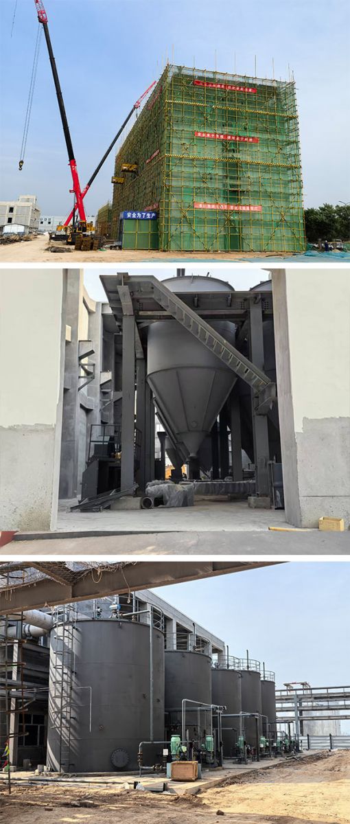 一、 硫化黑裝置總體安裝情況: 1、設(shè)備安裝情況 主體設(shè)備已安裝完成。 2、管道安裝情況 工藝管道:硫化前部、硫化、水解、尾氣已安裝完成90%。 儀表管道:硫化前部、硫化完成80%、水解安裝完成95%。 3、電氣、儀表安裝情況 硫化黑裝置配電室安裝完成80%,水解動(dòng)力、儀表電纜敷設(shè)完成,接線完成90%,硫化動(dòng)力、儀表電纜敷設(shè)完成,接線完成95%,硫化前部?jī)x表、動(dòng)力電纜正在敷設(shè)完成90%,接線完成30%。 二、噴霧干燥裝置 1、設(shè)備安裝情況 設(shè)備安裝完成,設(shè)備保溫已施工完成。 2、管道安裝情況 管道安裝完成95%,管道保溫已施工完成。 3、電氣、儀表安裝情況 電氣、儀表已全部安裝完成。 三、尾氣處理裝置 施工情況: 1、 設(shè)備安裝:裝置內(nèi)主要設(shè)備已安裝完成80%; 2、 工藝管道安裝:工藝管道預(yù)制焊接安裝完成60%; 3、 儀表管道:現(xiàn)場(chǎng)正在預(yù)制; 4、 電氣安裝:現(xiàn)場(chǎng)正在整理設(shè)備就地操作柜準(zhǔn)備開始安裝; 5、 儀表安裝:未開始安裝; 四、非標(biāo)儲(chǔ)罐 1、現(xiàn)場(chǎng)非標(biāo)儲(chǔ)罐共計(jì)24臺(tái),現(xiàn)場(chǎng)已制作焊接完成。 2、非標(biāo)儲(chǔ)罐防腐噴漆完成80%。 五、滾筒干燥混合機(jī)安裝 1、設(shè)備:主要設(shè)備已安裝就位完成。 2、 電氣:低壓配電柜已安裝就位完成,電纜橋架安裝完成,電纜鋪設(shè)完成,接線完成70%。